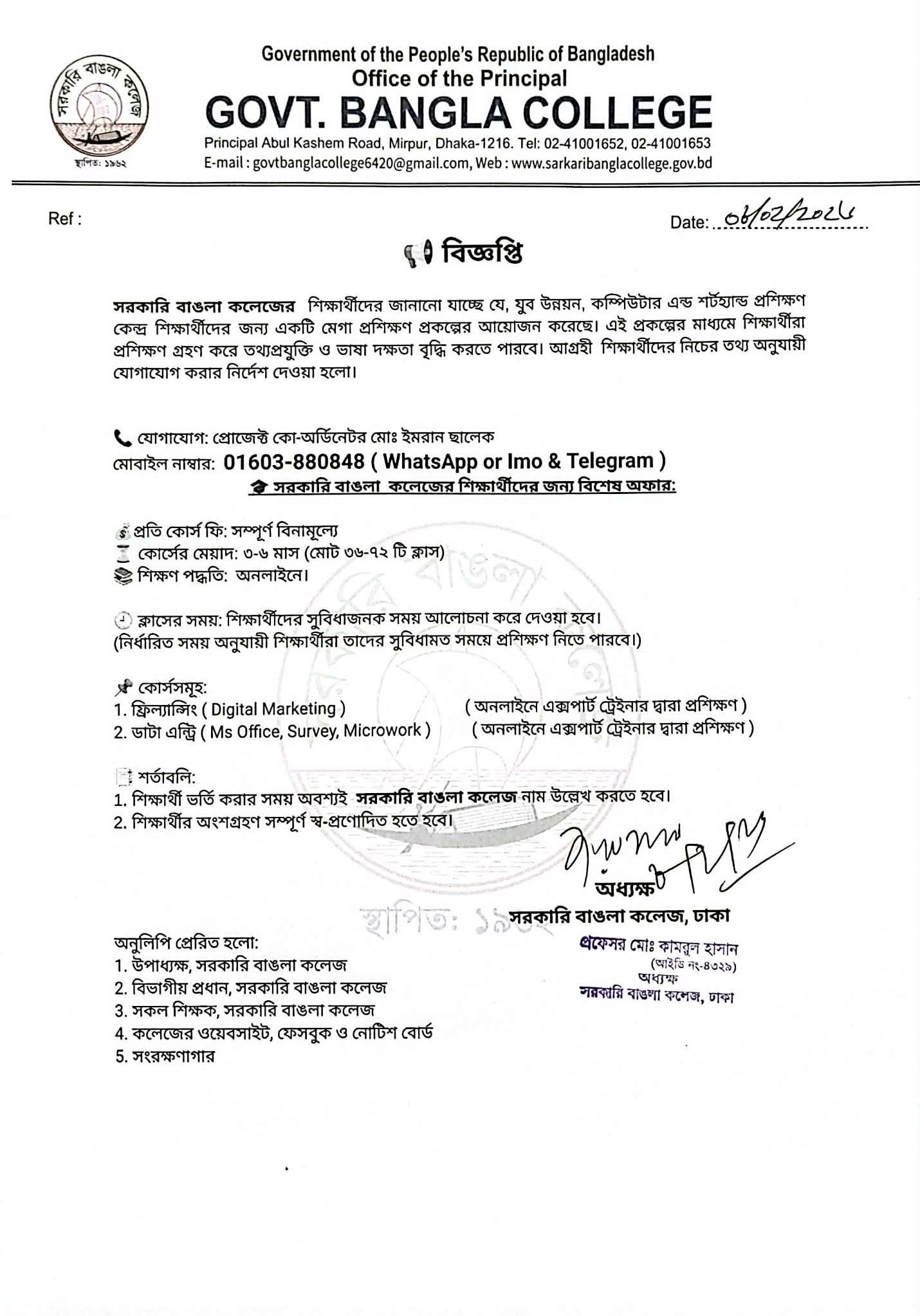 শিক্ষার্থীদের প্রশিক্ষণ প্রদান সংক্রান্ত
