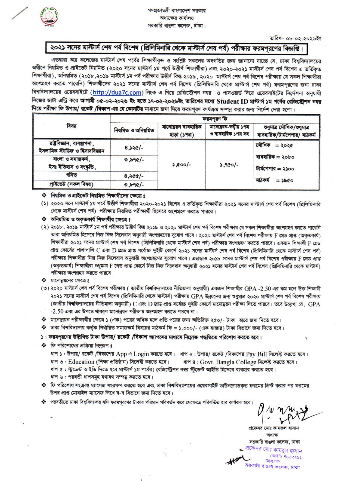 মাস্টার্স শেষ পর্ব (শিক্ষাবর্ষ:২০২০-২০২১) কোর্সে ভর্তি বিজ্ঞপ্তি