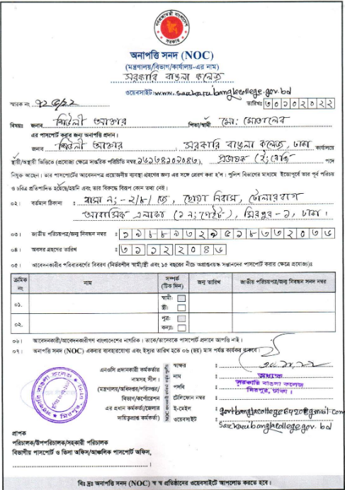 জনাব শিউলি আকতার-এর অনাপত্তিপত্র।