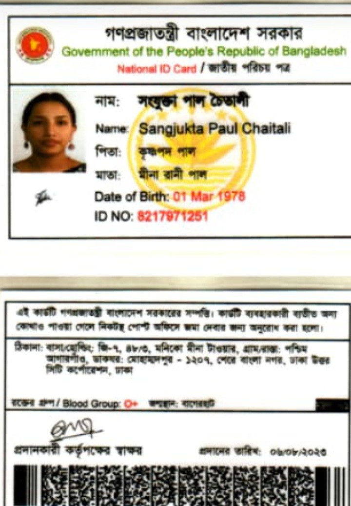 NID of Sangjukta Paul Chaotali