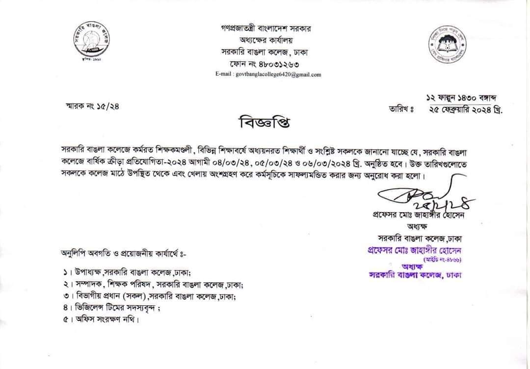 বার্ষিক ক্রীড়া প্রতিযোগিতা -২০২৪