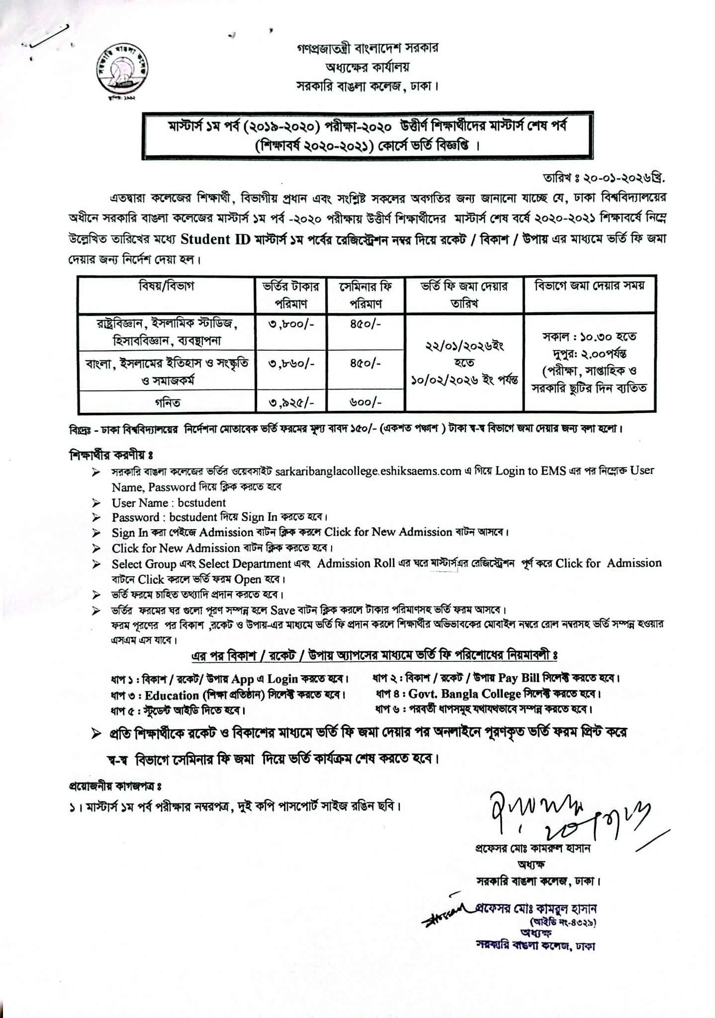 মাস্টার্স শেষ পর্ব (শিক্ষাবর্ষ:২০২০-২০২১) কোর্সে ভর্তি বিজ্ঞপ্তি