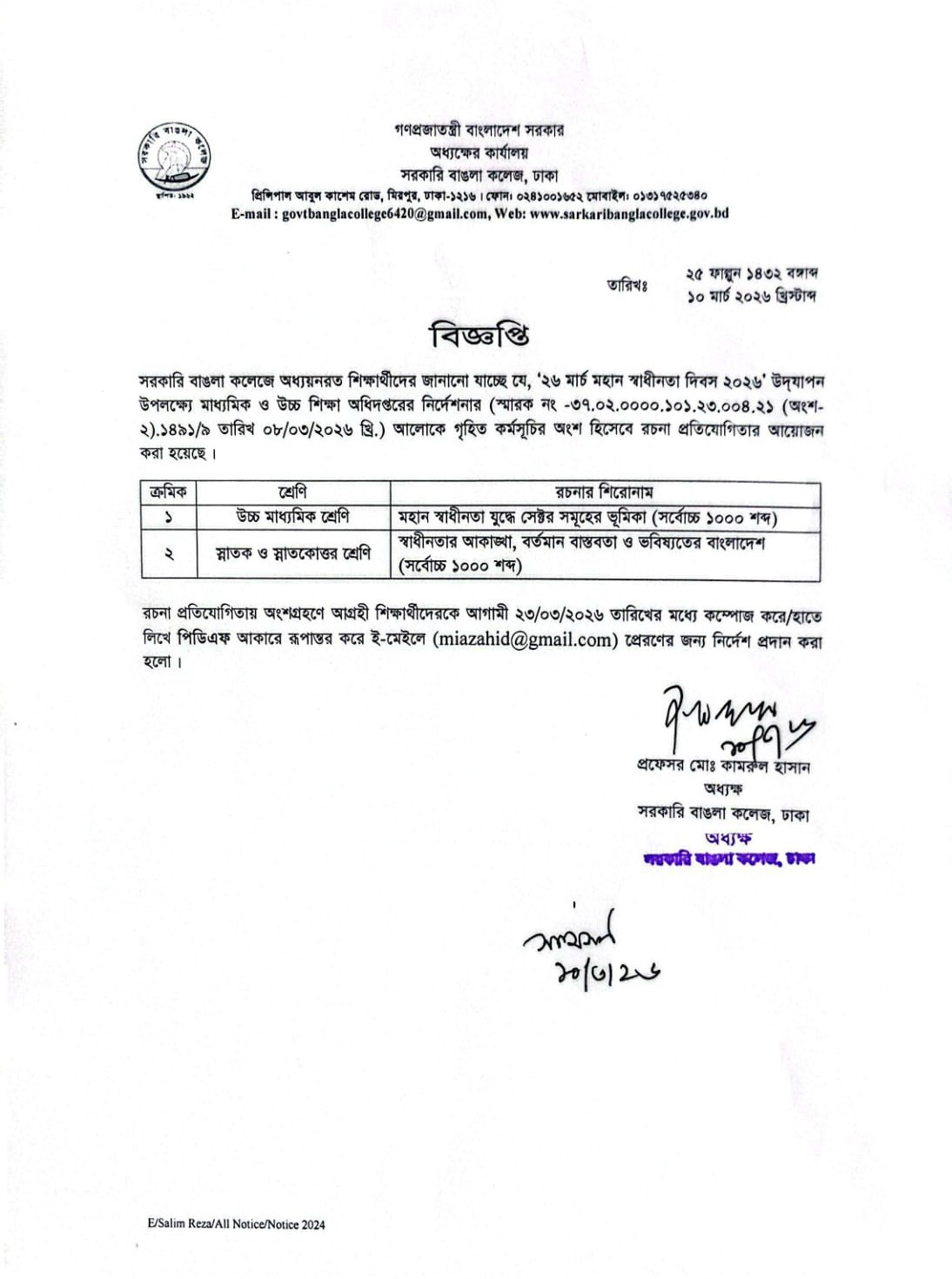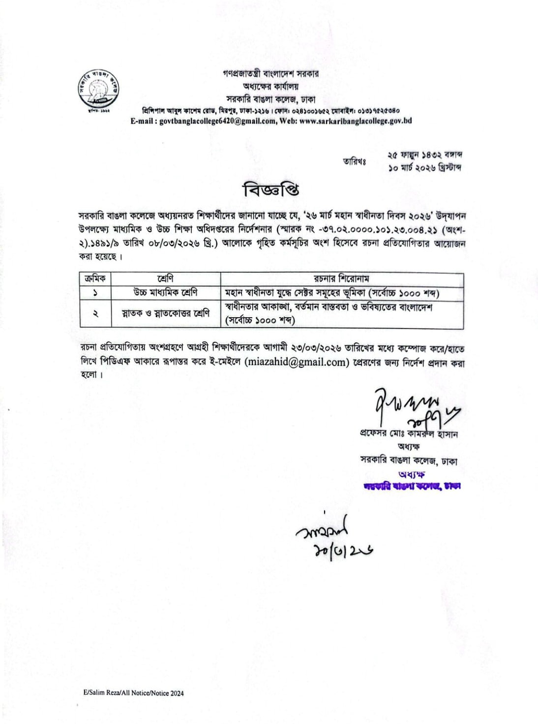মহান স্বাধীনতা দিবস- ২০২৬ উদযাপন উপলক্ষে রচনা প্রতিযোগিতা সম্পর্কিত