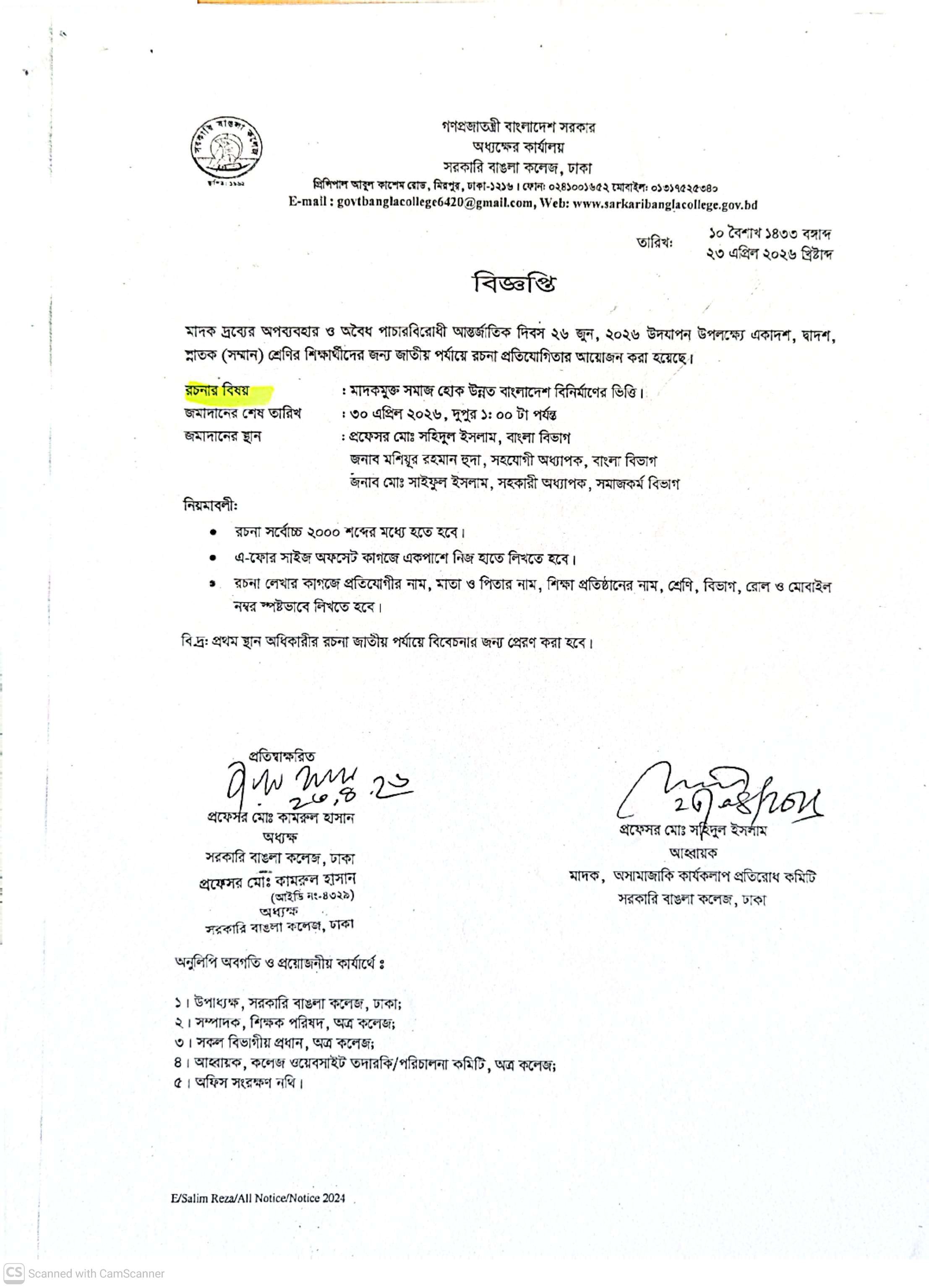 জাতীয় পর্যায়ে রচনা প্রতিযোগিতা প্রসঙ্গে