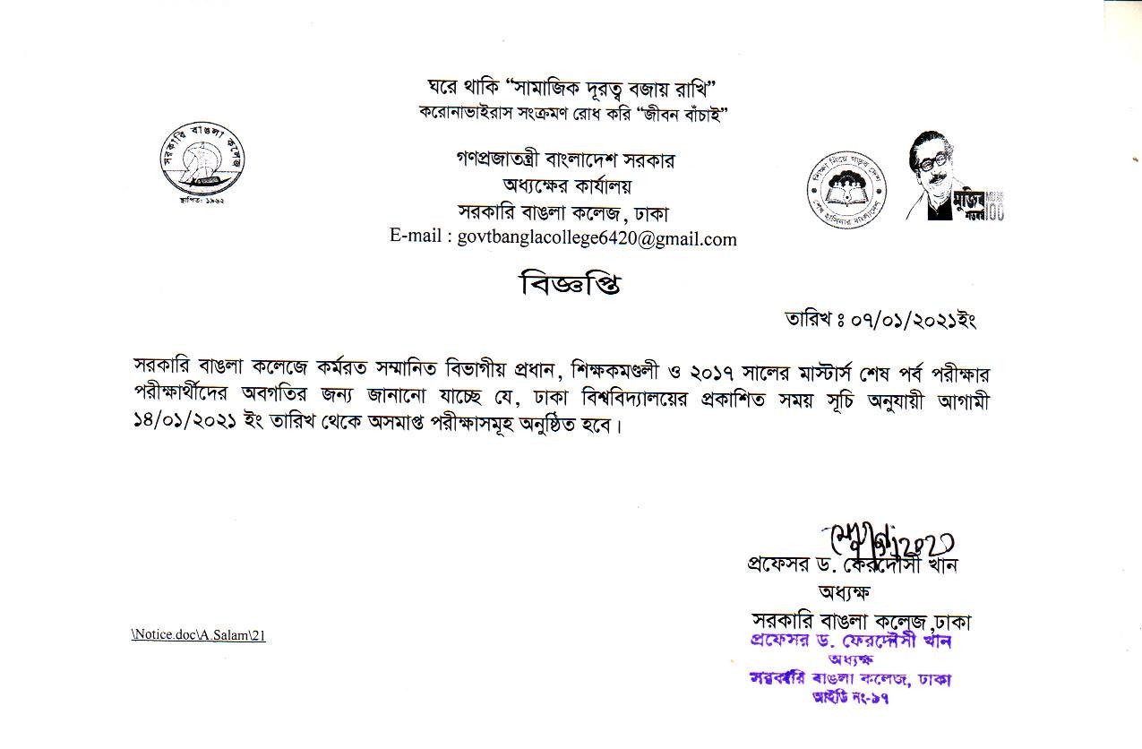 অধ্যক্ষ, সরকারি বাঙলা কলেজ
