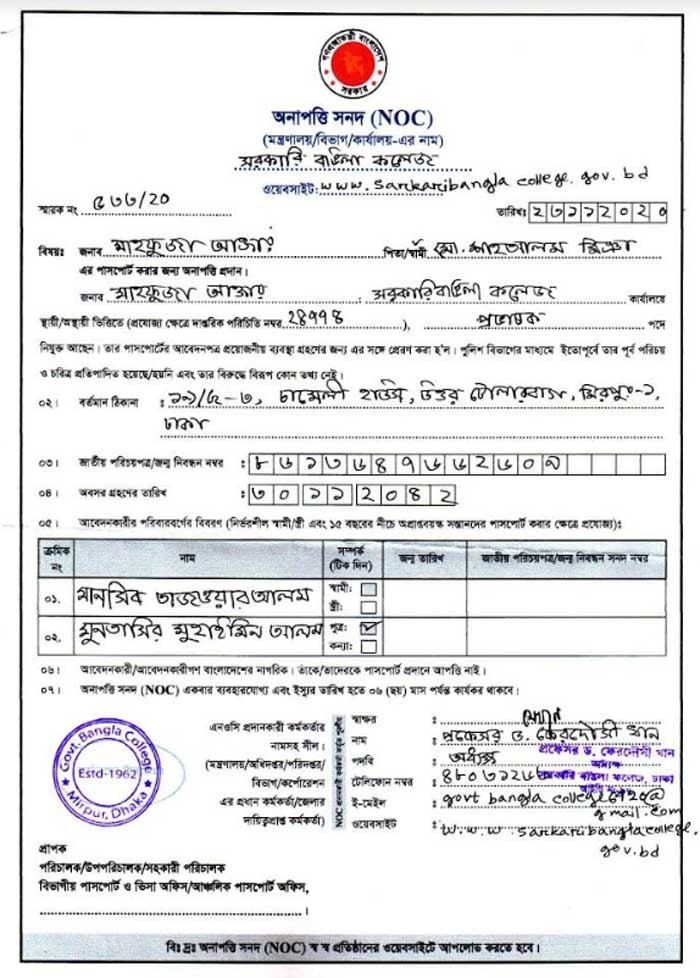 অধ্যক্ষ, সরকারি বাঙলা কলেজ