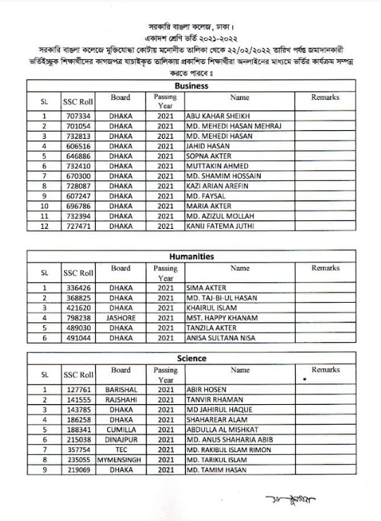 Admission List 02 (Freedom Fighter Quota)