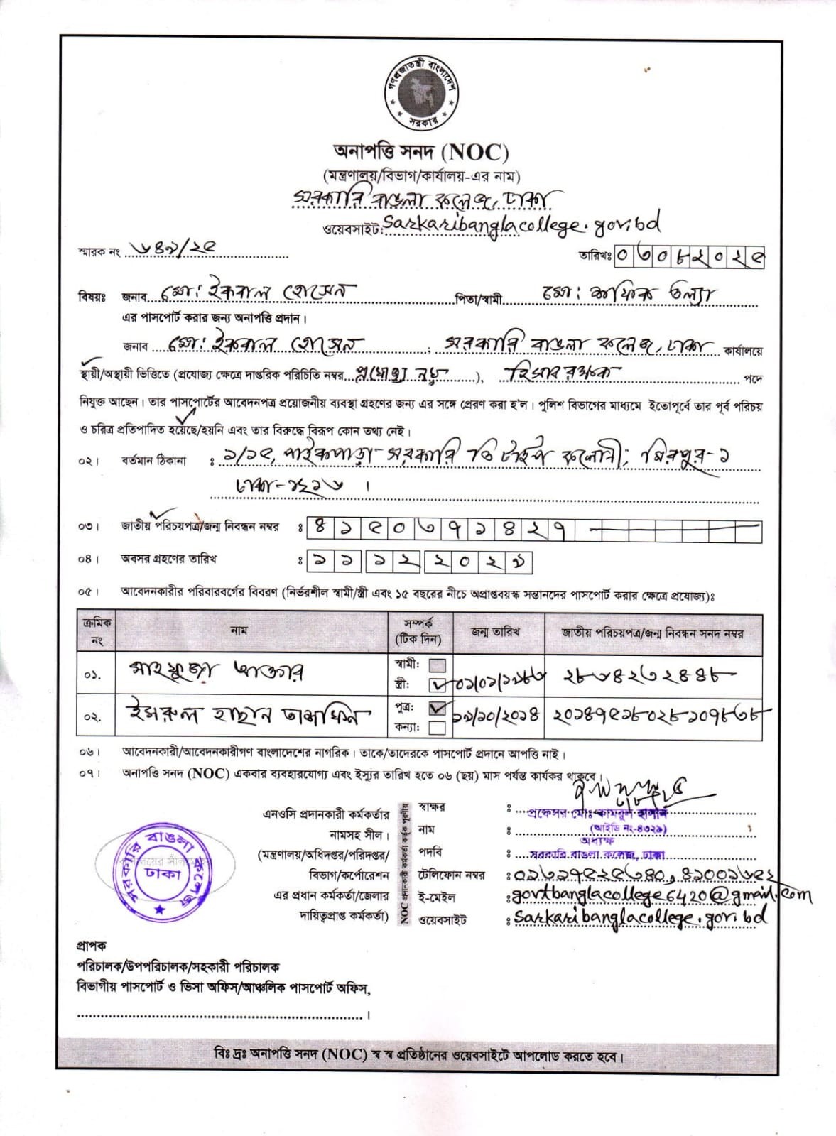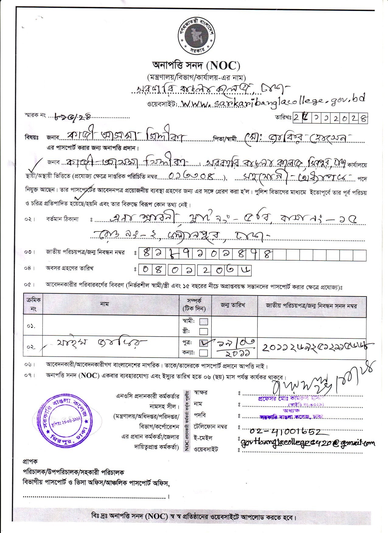 জনাব জনাব কামরুন নাহারের অনাপত্তিপত্র