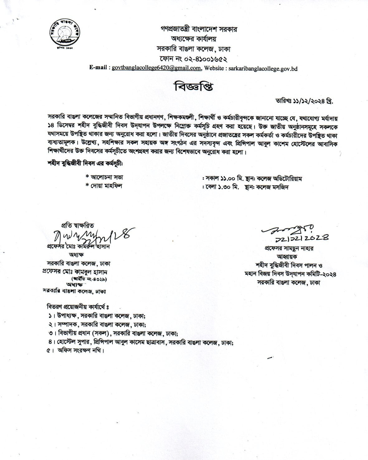 শহিদ বুদ্ধিজীবী দিবস ২০২৪ এর কর্মসূচি