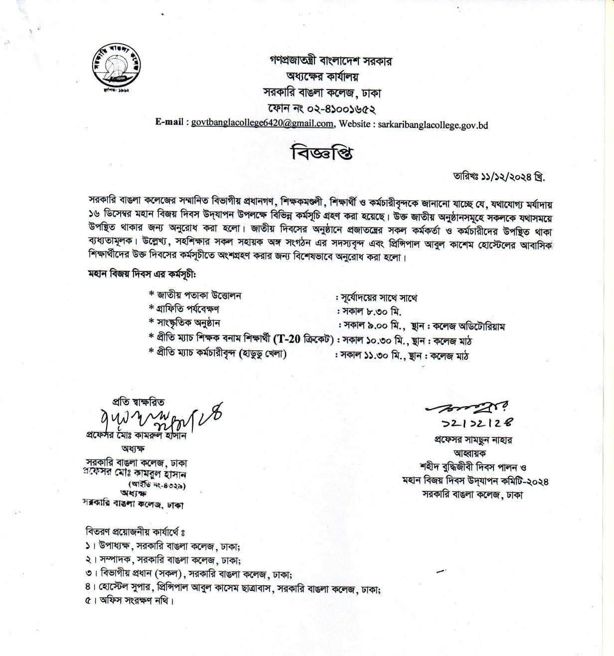 মহান বিজয় দিবস ২০২৪ উদযাপন প্রসঙ্গে