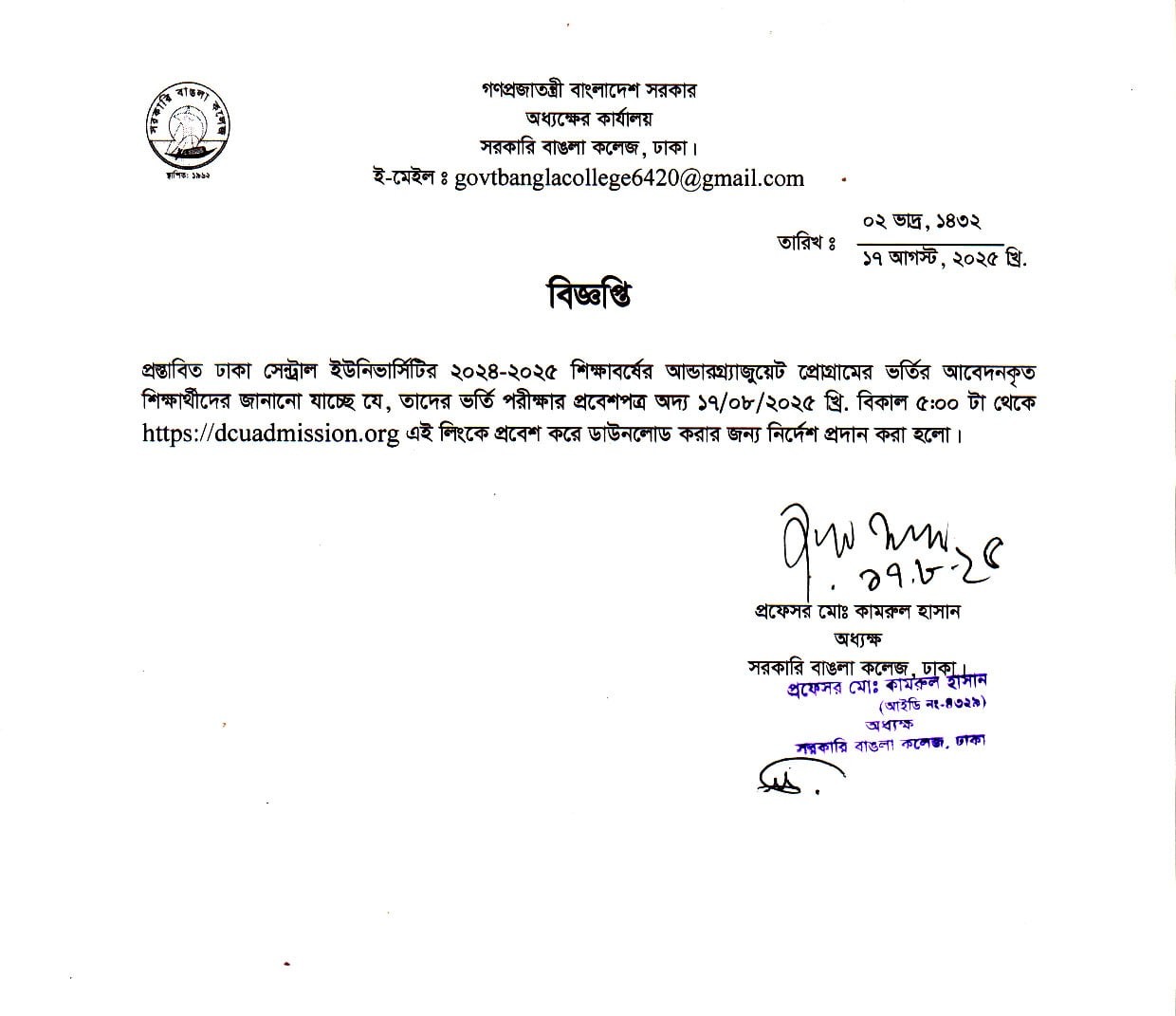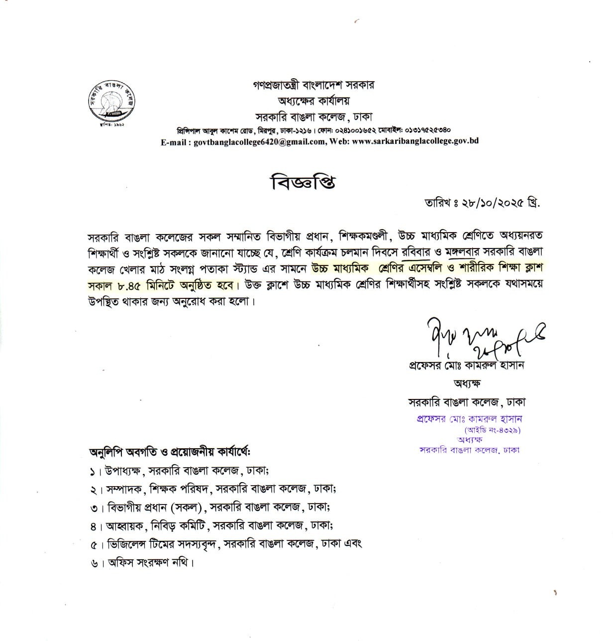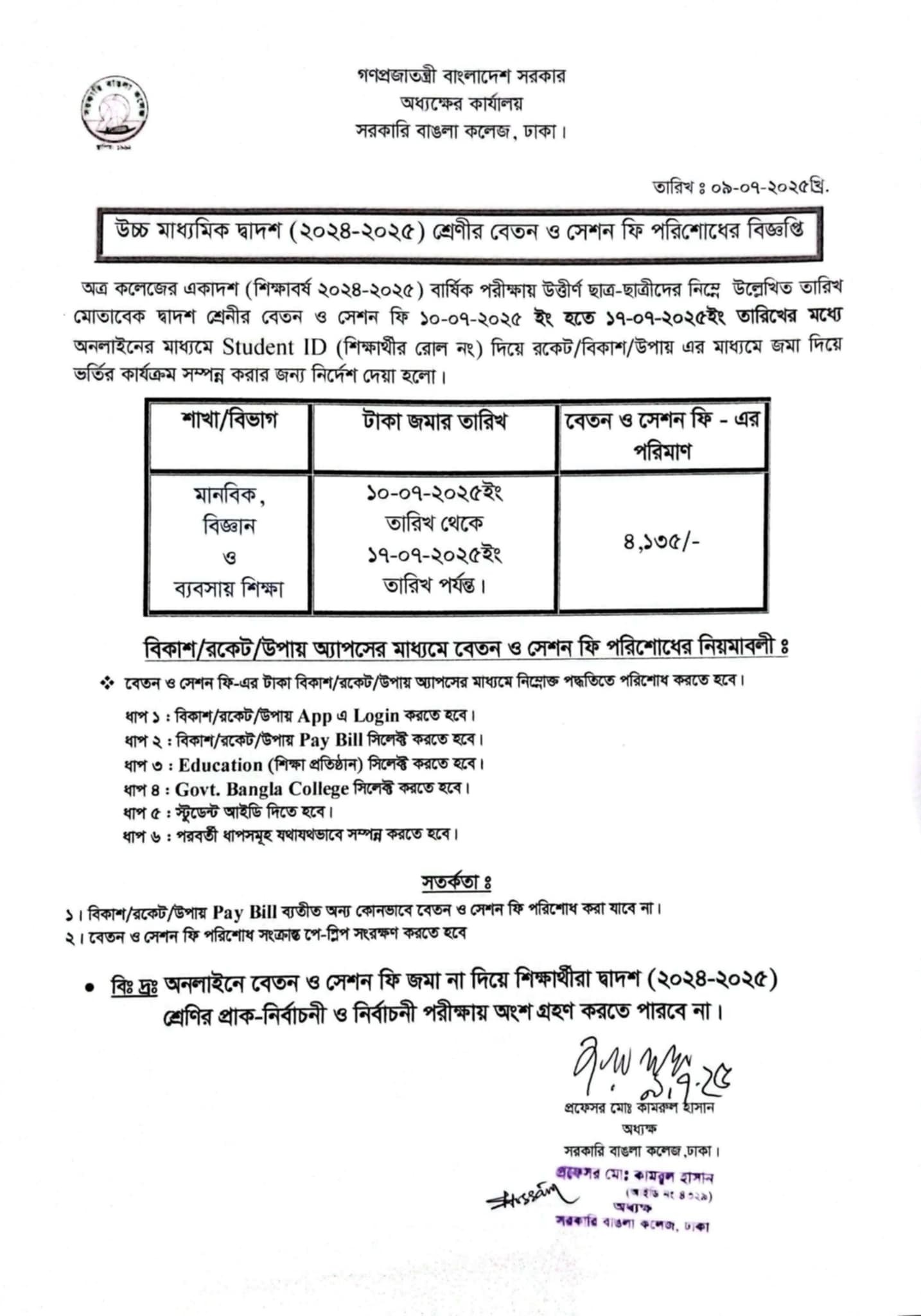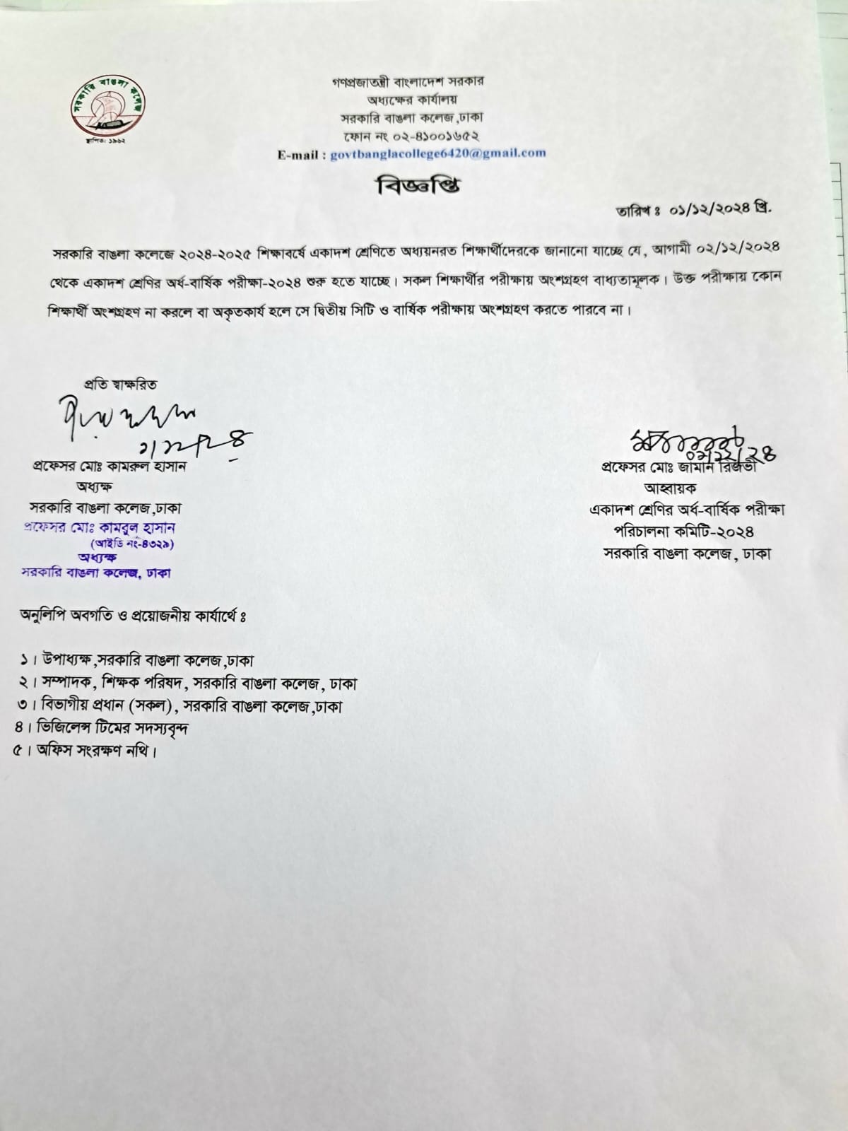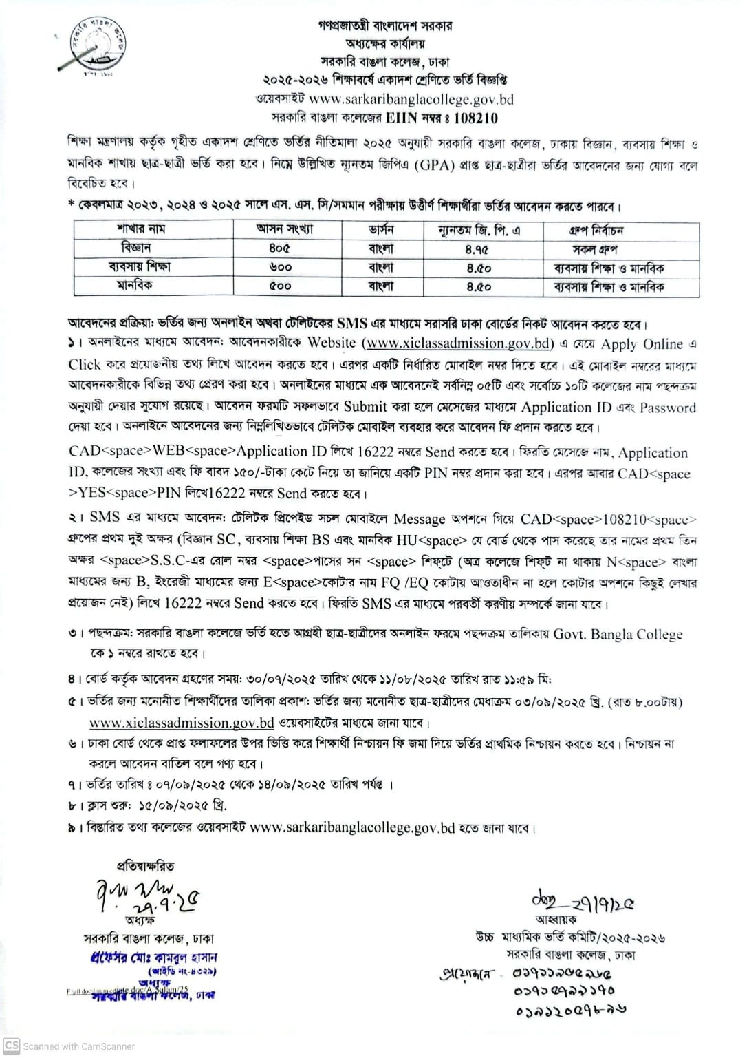 ** ** ২০২৫-২০২৬ শিক্ষাবর্ষে একাদশ শ্রেণির ভর্তি বিজ্ঞপ্তি **