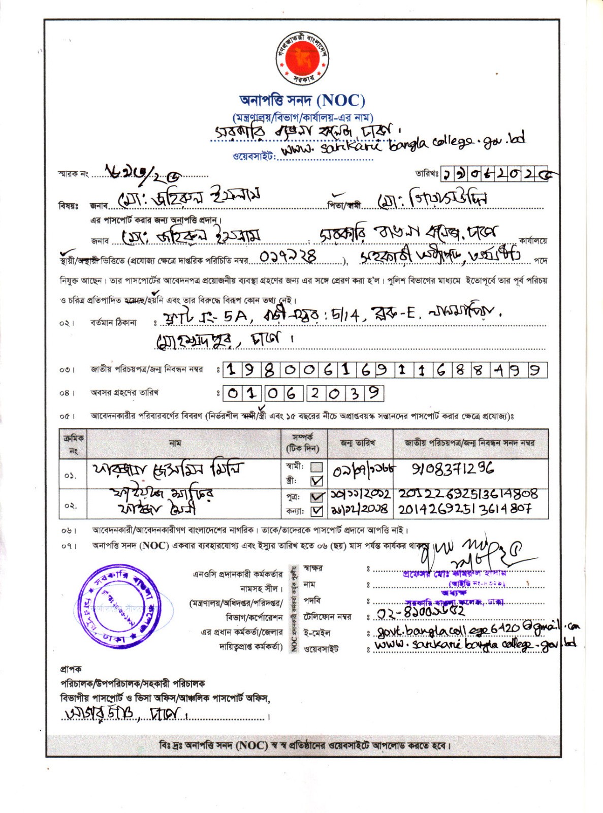 মো: আব্দুর রহমান এর অনাপত্তিপত্র